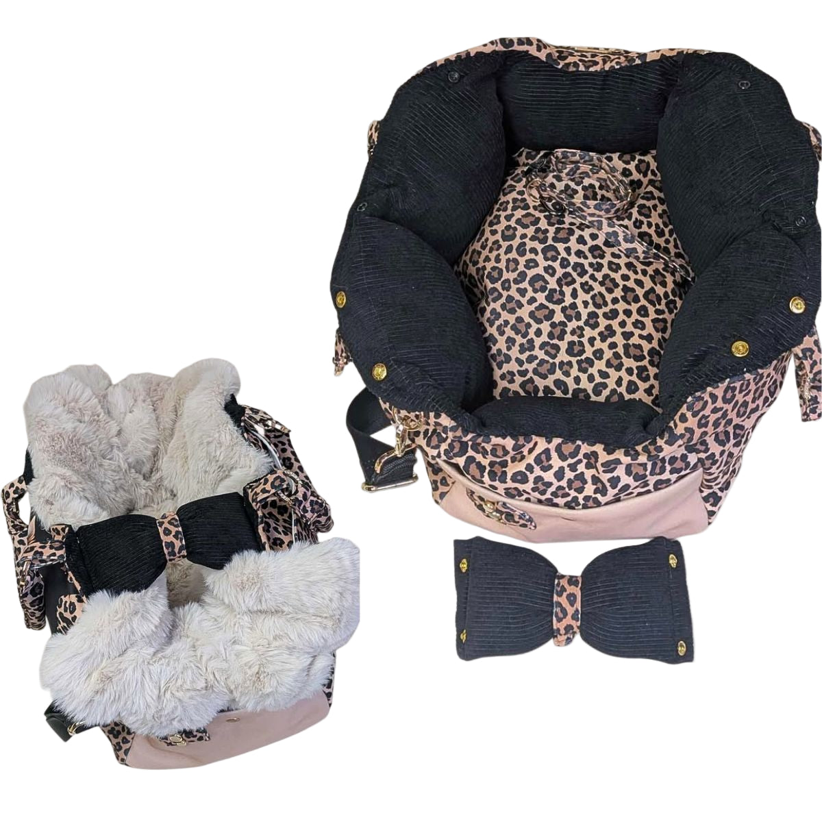 Realizzata interamente a mano con pregiato velluto e impreziosita da una stampa artigianale esclusiva del Yorkshire Terrier. L'interno è un'oasi di comfort grazie all'imbottitura di alta qualità, al cuscino estraibile e alla pelliccia rimovibile per l'inverno. La metalleria dorata dona un tocco di lusso autentico.
